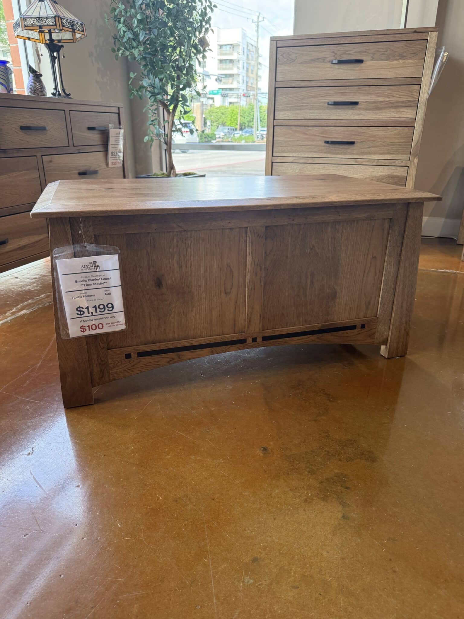 WOOD: Rustic Hickory STAIN: A00 DIMENSIONS: 44″ W x 22 1/2″ D x 22″ H FEATURES: Cedar Bottom