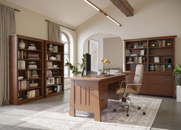 The Fulton Collection showcases the enduring beauty of Mission style with its traditional flared legs and distinctive slatted sides. Each piece is thoughtfully crafted to bring warmth, character, and lasting quality to your home or office. The collection offers a wide array of options, including desks, returns, hutches, credenzas, file cabinets, printer stands, and bookcases—making it easy to create a workspace that fits your needs.