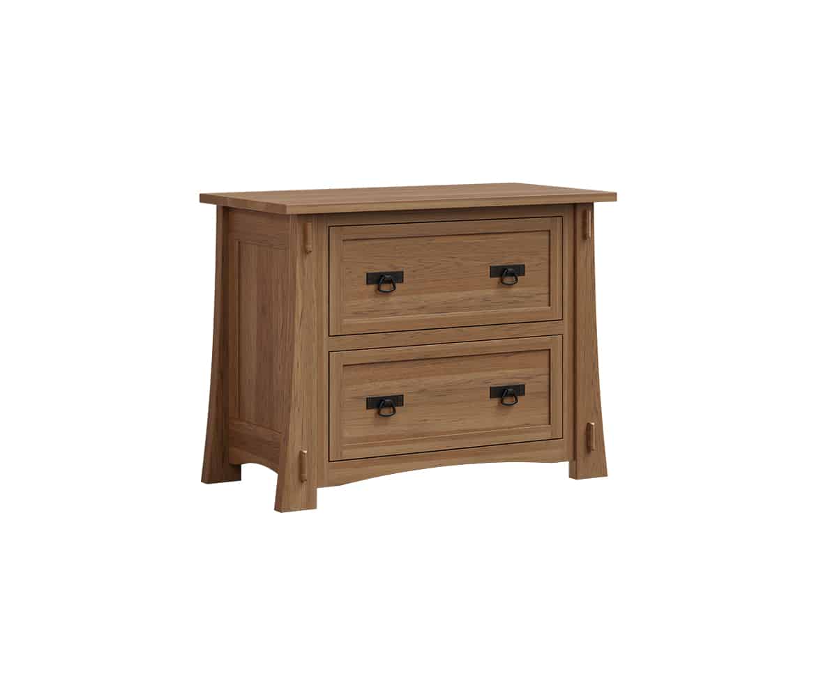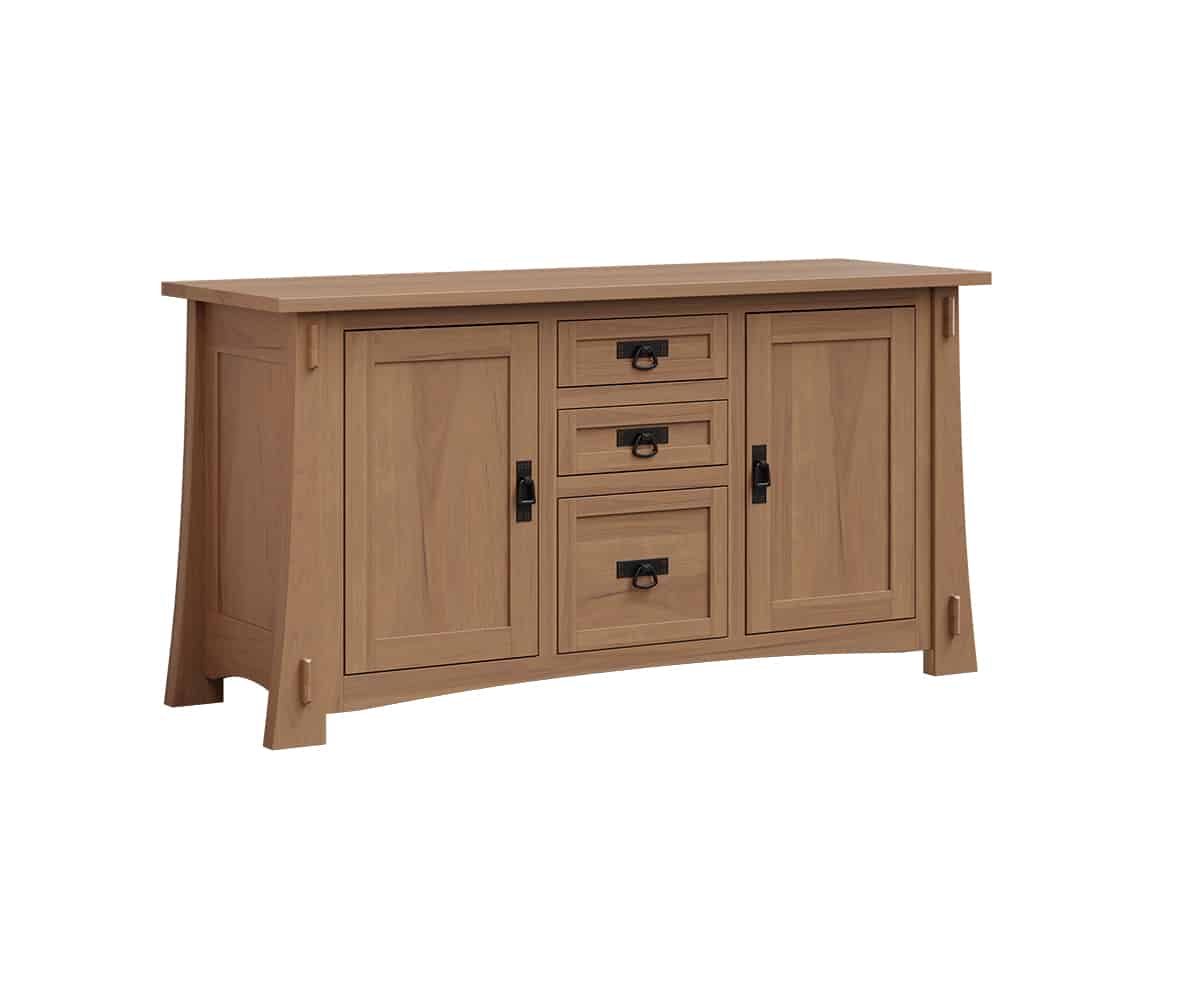 Standard hardware is the classic Mission Period style, but you can personalize your Mason pieces with a variety of hardware options. Shown in Rustic Hickory with Sandstone Stain, the Mason Collection can be customized in your choice of wood and finish to perfectly suit your space.