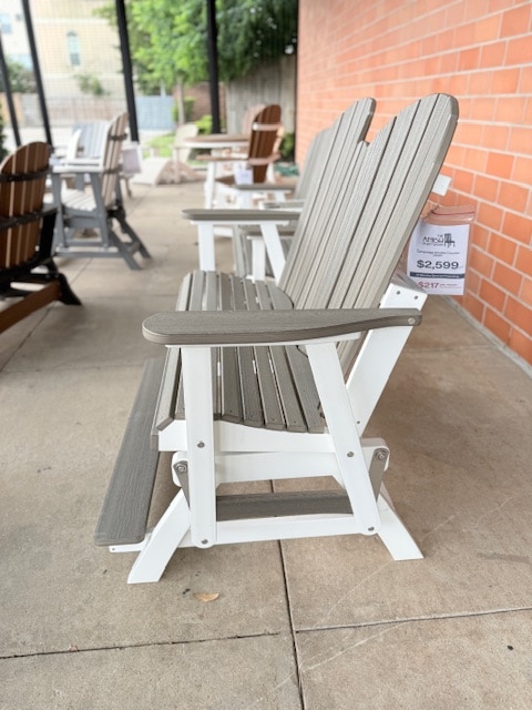 Poly furniture is made from High-Density Polyethylene (HDPE), a recycled plastic that will never need to be painted or stained. It will not rot or splinter, and it contains an added UV protective agent to resist fading. Poly furniture is not affected by most corrosive substances and will not promote bacterial growth.