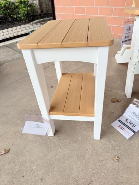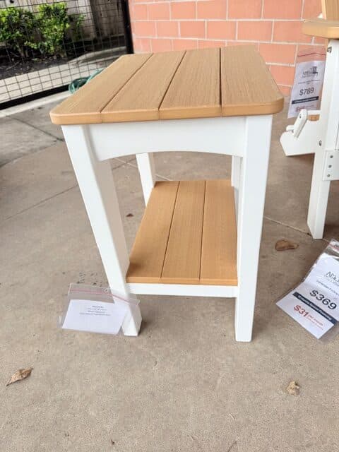 Poly furniture is made from High-Density Polyethylene (HDPE), a recycled plastic that will never need to be painted or stained. It will not rot or splinter, and it contains an added UV protective agent to resist fading. Poly furniture is not affected by most corrosive substances and will not promote bacterial growth.