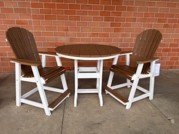 Poly furniture is made from High-Density Polyethylene (HDPE), a recycled plastic that will never need to be painted or stained. It will not rot or splinter, and it contains an added UV protective agent to resist fading. Poly furniture is not affected by most corrosive substances and will not promote bacterial growth.